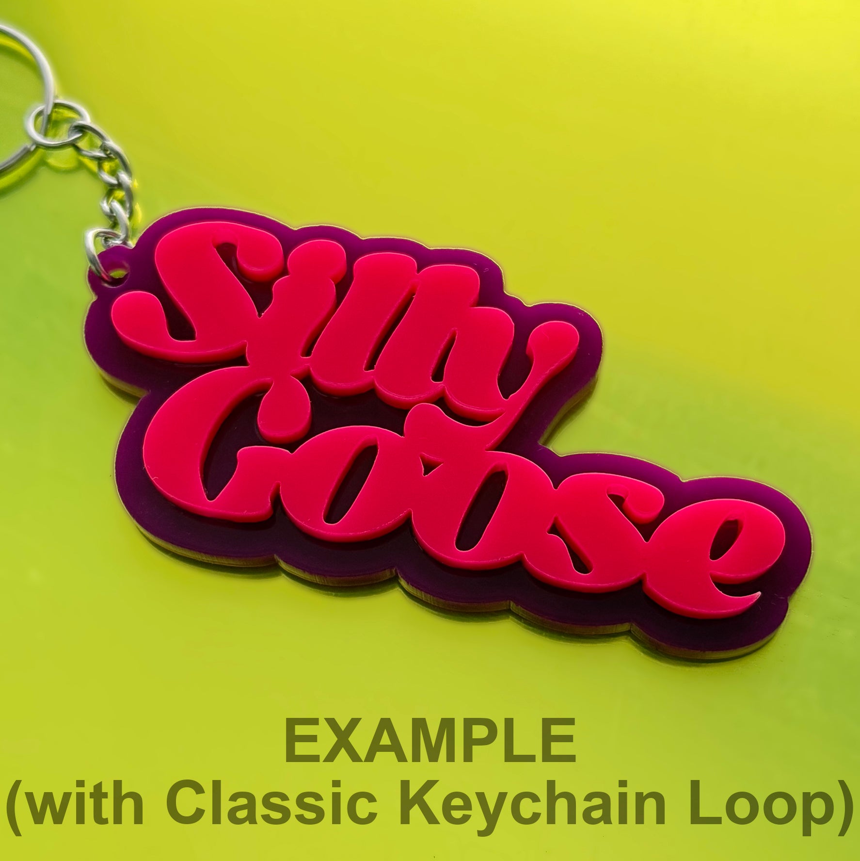 Lastly, choose your vibe: classic keychain loop or lobster clasp (makes it a bag charm) with a small keychain loop.