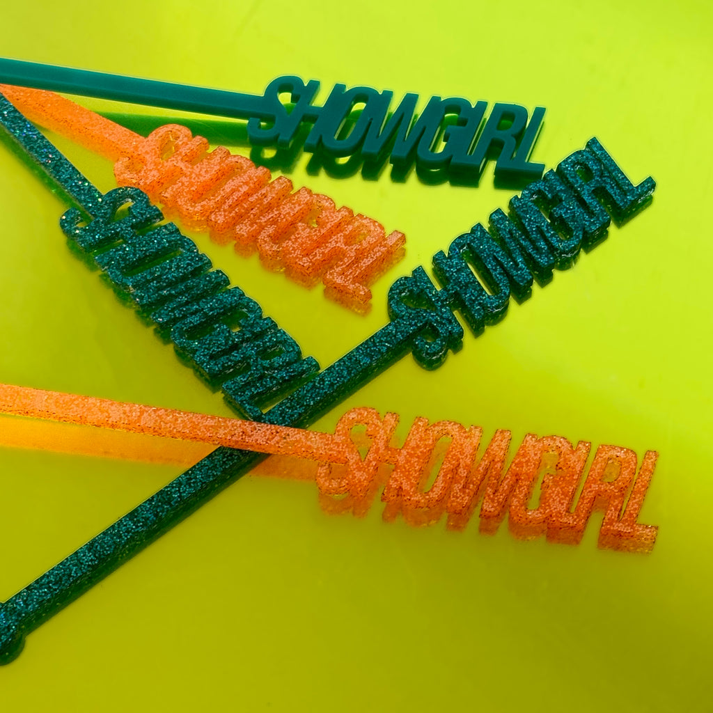 • Comes with Showgirl design: 2 Teal Glitter, 2 Orange Glitter, 1 Solid Teal.