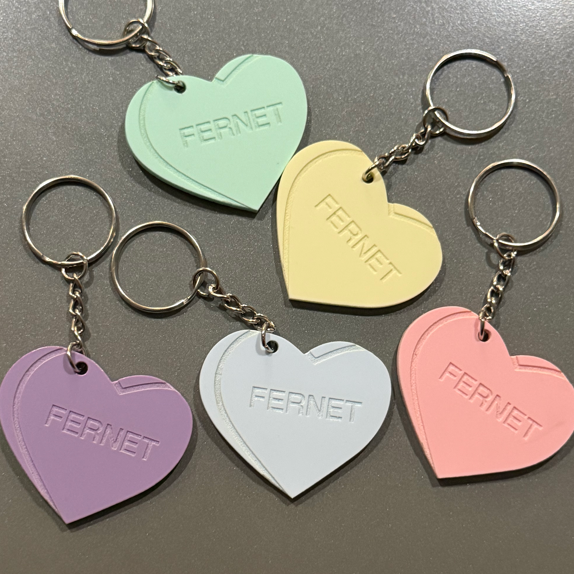 FERNET Heart Candy Keychain or Bag Charm, Acrylic