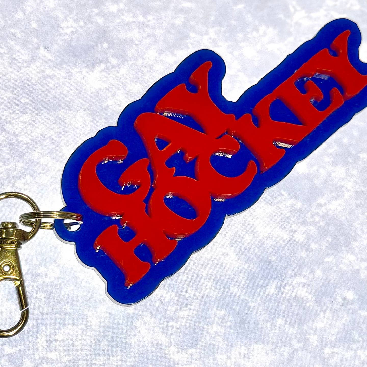 Machine cut, double layer orange / black acrylic keychain made in the USA.