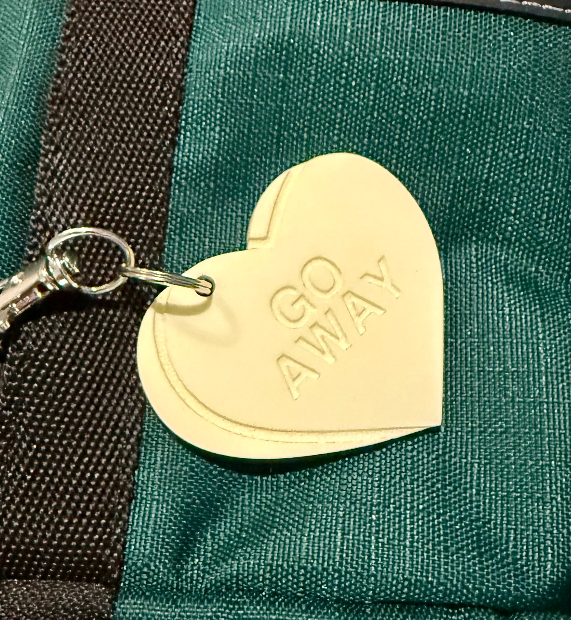 Machine cut, pastel acrylic keychain made in the USA. Works as a bag charm and keychain with a lobster clasp attached.