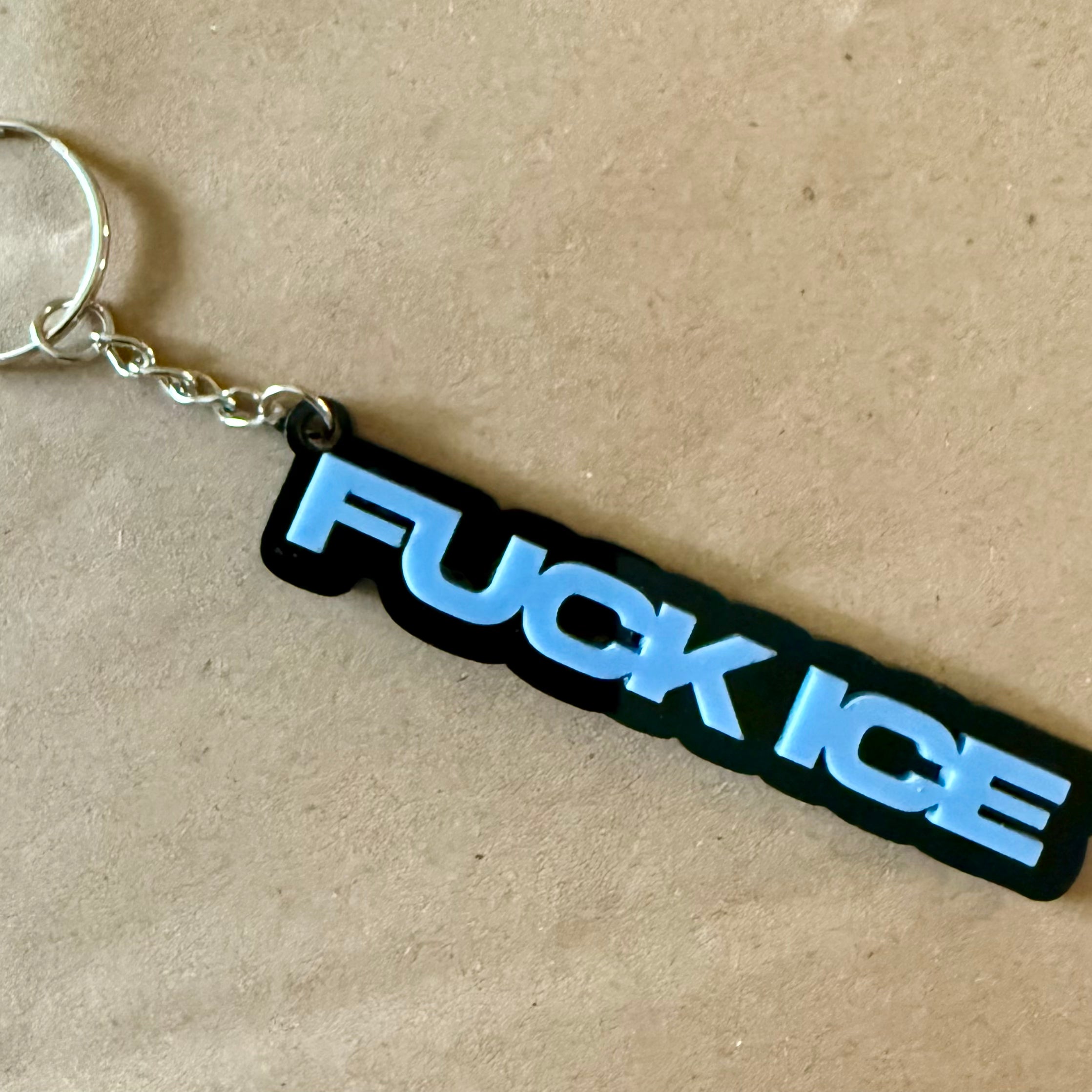 Machine cut, double layer pastel blue / black acrylic keychain made in the USA.
